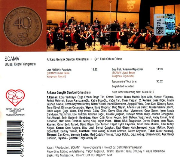 Ankara Gençlik Senfoni Orkestrası, Orhun Orhon: SCAMV Ulusal Beste Yarışması - CD Foto