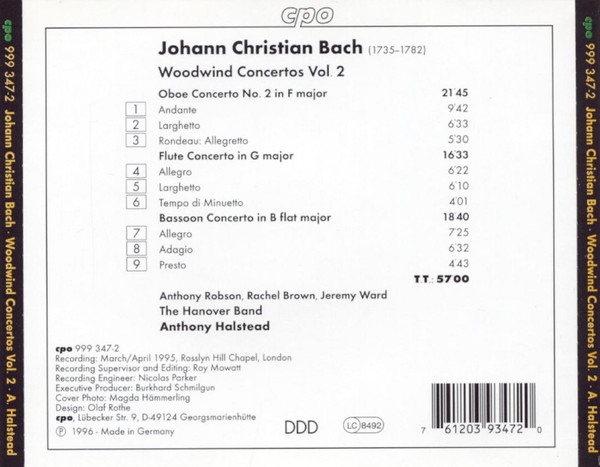 Anthony Halstead, The Hanover Band: Christian Bach:  Woodwind Concertos Vol. 2 - CD Foto