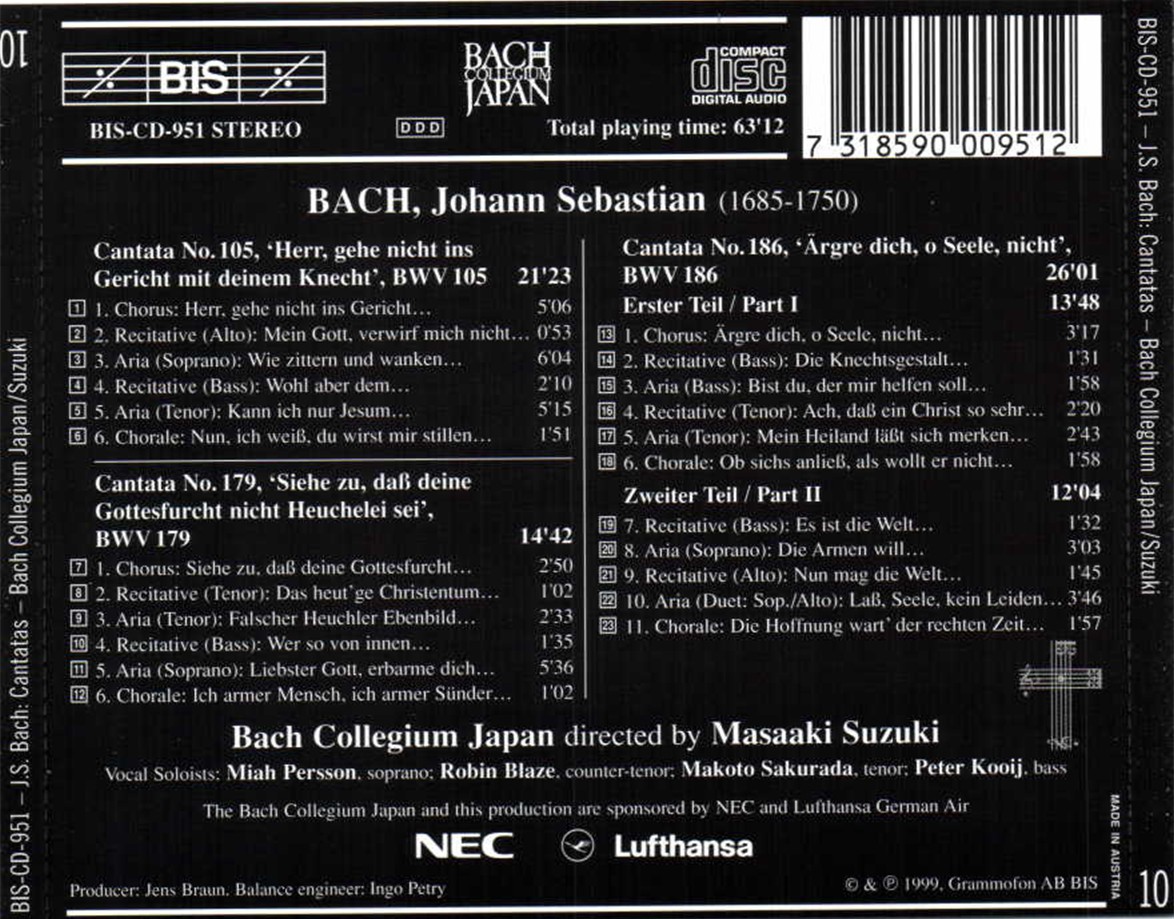 Bach Collegium Japan, Masaaki Suzuki: J.S. Bach: Cantatas, Vol. 10 (BWV 179, 105, 186) - CD Foto