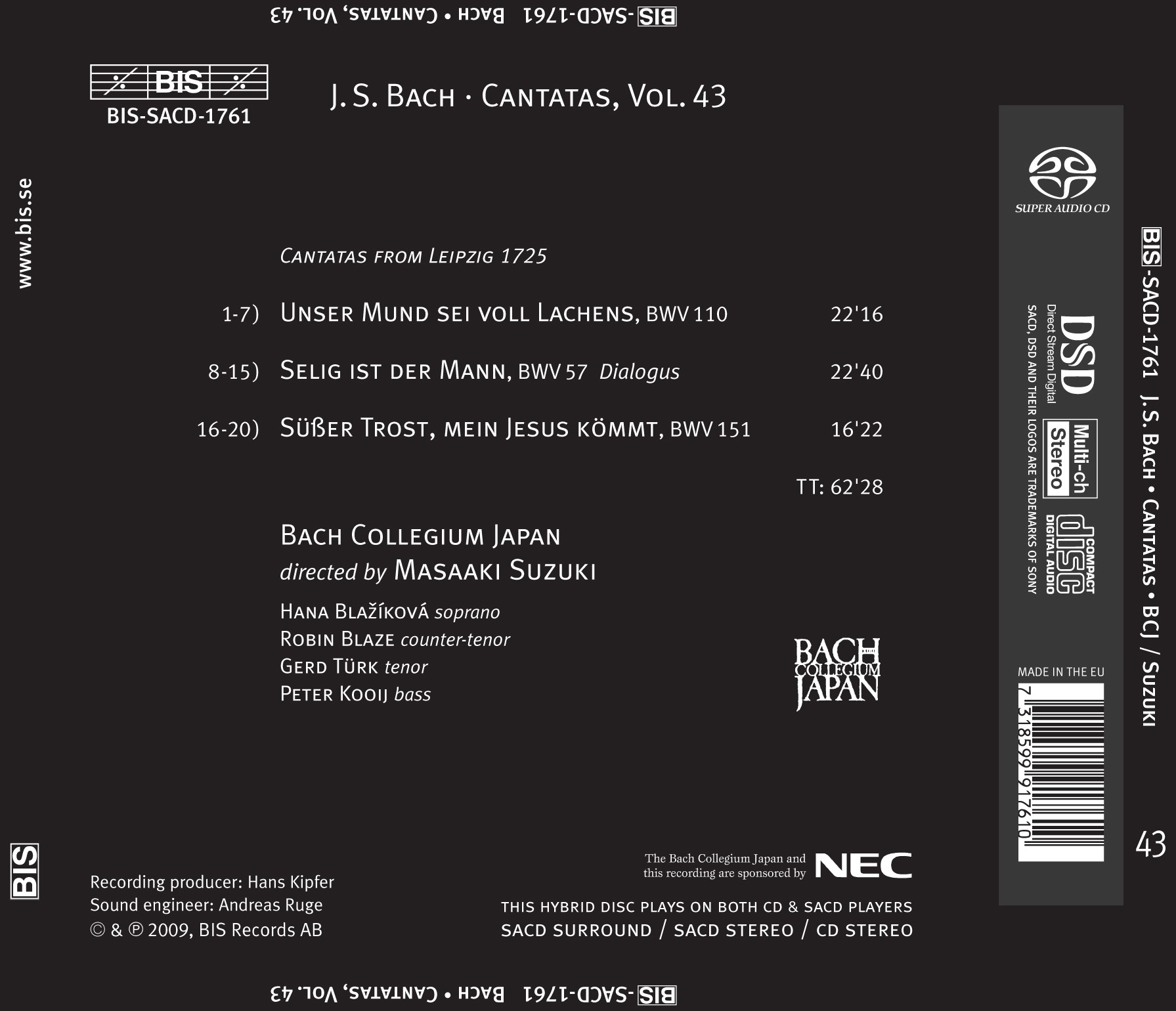 Bach Collegium Japan, Masaaki Suzuki: J.S. Bach: Cantatas, Vol. 43 - SACD Foto
