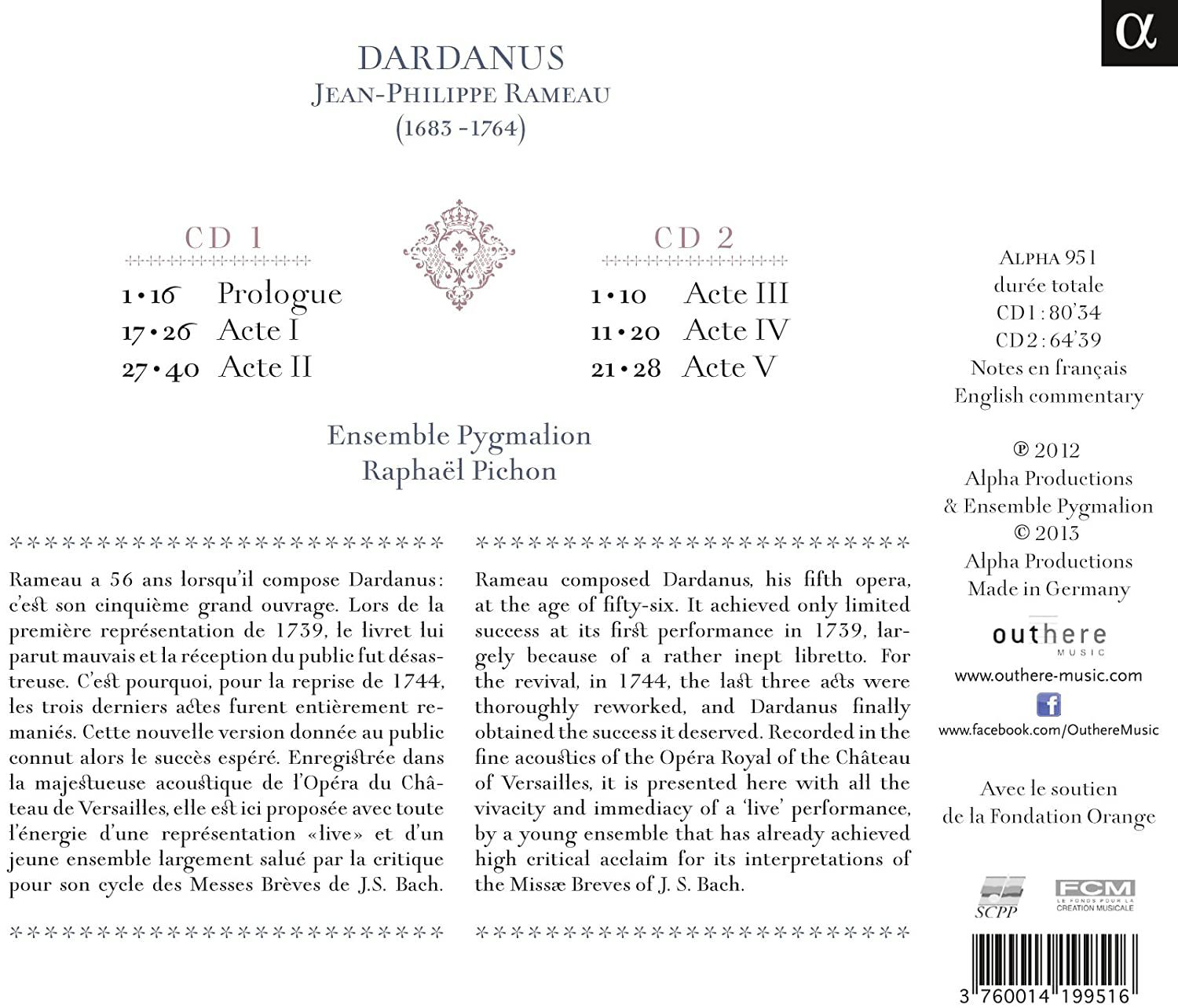 Barkod: 3760014199516 Firma: Alpha Katalog No: ALPHA 951 Yayın Tarihi: 02.01.2014 Tür: Klasik Müzik Tür: Opera Tür: Barok Format: 2 CD