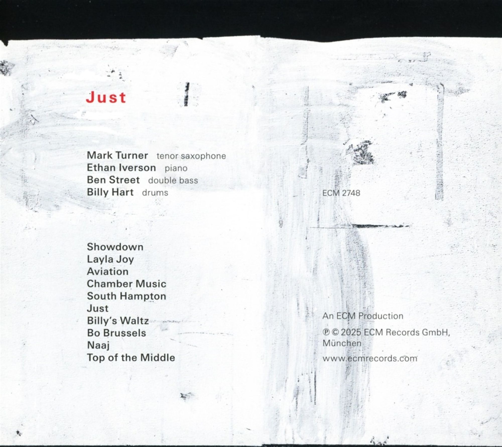 A drummer of enormous experience, who has played through many of jazz's idiomatic upheavals, Hart, now 83, advocates a 'multi-directional' sound approach, and his younger confrères respond accordingly, each piece subtly opening another door. On Just, Ethan Iverson contributes four compositions, ranging from the sly, floating 'Chamber Music' to the eruptively motoric 'Aviation'. Mark Turner and Hart himself bring three tunes apiece. Hart's include updates of two of his well-known tunes, 'Layla Joy' and 'Naaj', while among Turner's pieces is 'Billy's Waltz', both a graceful dance and a vehicle for blues-conscious expression, and the uptempo vamp 'Top of the Middle'.