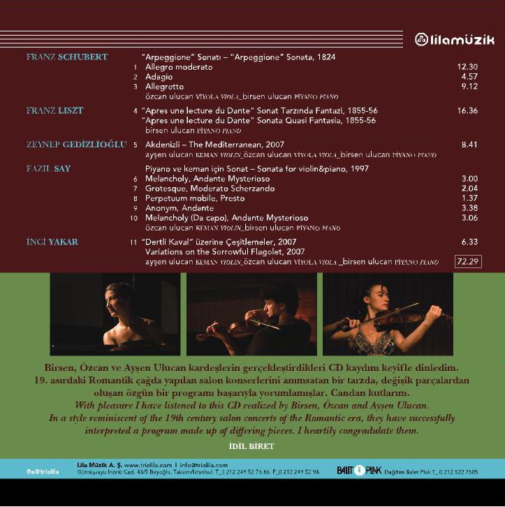 Barkod: 8697427992821 Firma: Lila Müzik Yayın Tarihi: 01.04.2016 Tür: Klasik Müzik Tür: Oda Müziği Tür: Romantik Dönem Tür: 20-21. Yüzyıl Tür: Yerli Besteciler (Klasik Müzik) Tür: Yerli Yorumcular (Klasik Müzik) Format: 1 CD