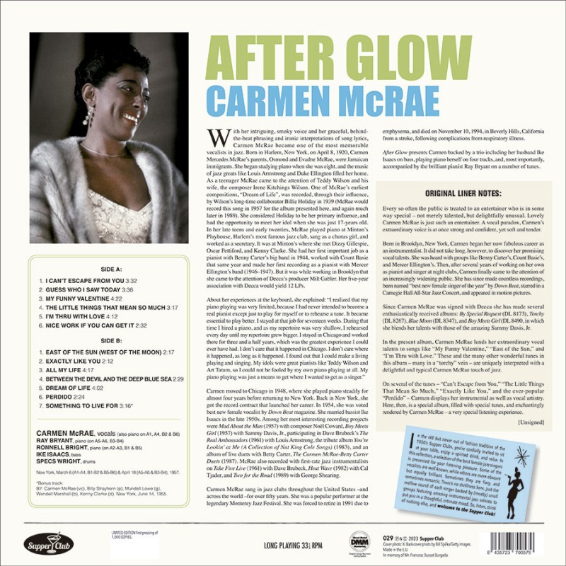 Carmen McRae: After Glow With The Ray Bryant Trio (Limited Edition) - Plak Foto