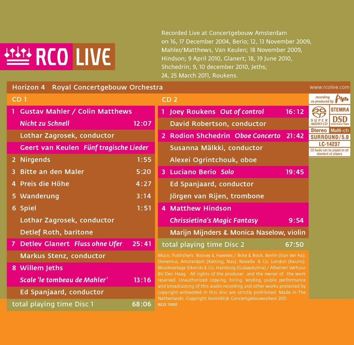 Royal Concertgebouw Orchestra - Horizon 4 (Mahler, Van Keulen, Glanert) - SACD