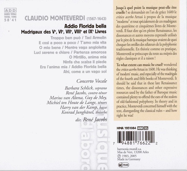 Concerto Vocale, René Jacobs: Monteverdi: Addio Florida Bella - CD Foto