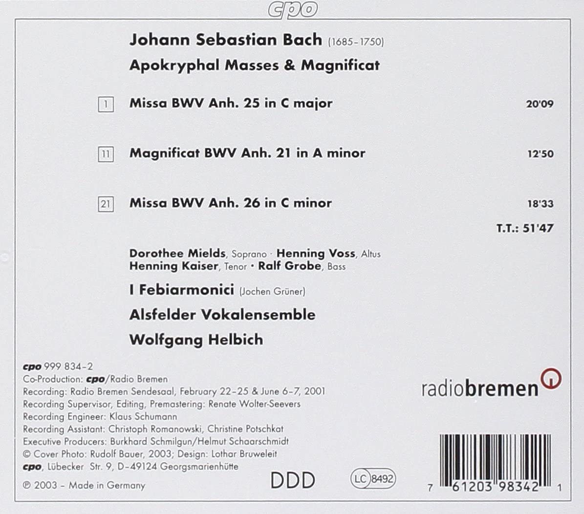 Dorothee Mields, Henning Voss, Henning Kaiser, Ralf Grobe, Alsfelder Vokalensemble, I Febiarmonici, Wolfgang Helbich: J.S. Bach: Apocryphal Masses - CD Foto