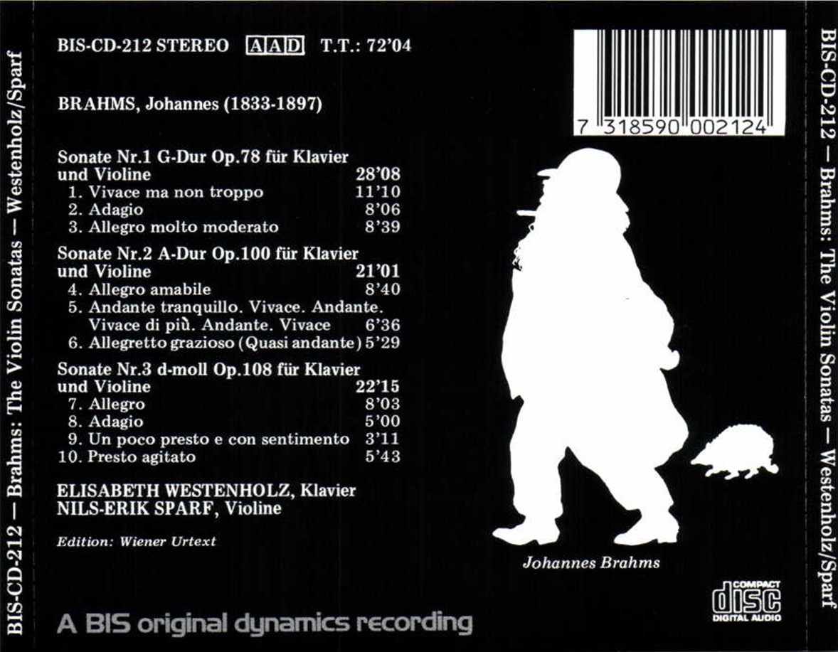 Elisabeth Westenholz, Nils-Erik Sparf: Brahms: Violin Sonatas - CD Foto