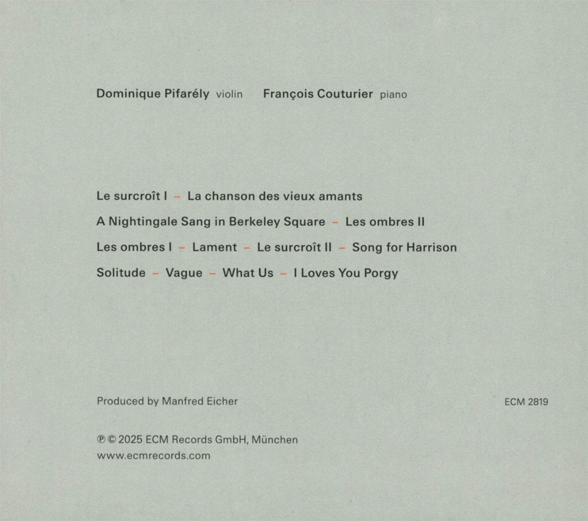 Barkod: 0602475223054 Firma: ECM Katalog No: ECM2819 Yayın Tarihi: 30.05.2025 Tür: Caz - Blues Tür: Caz Tür: Keman (Caz) Tür: Piyano - Keyboard (Caz) Format: 1 CD