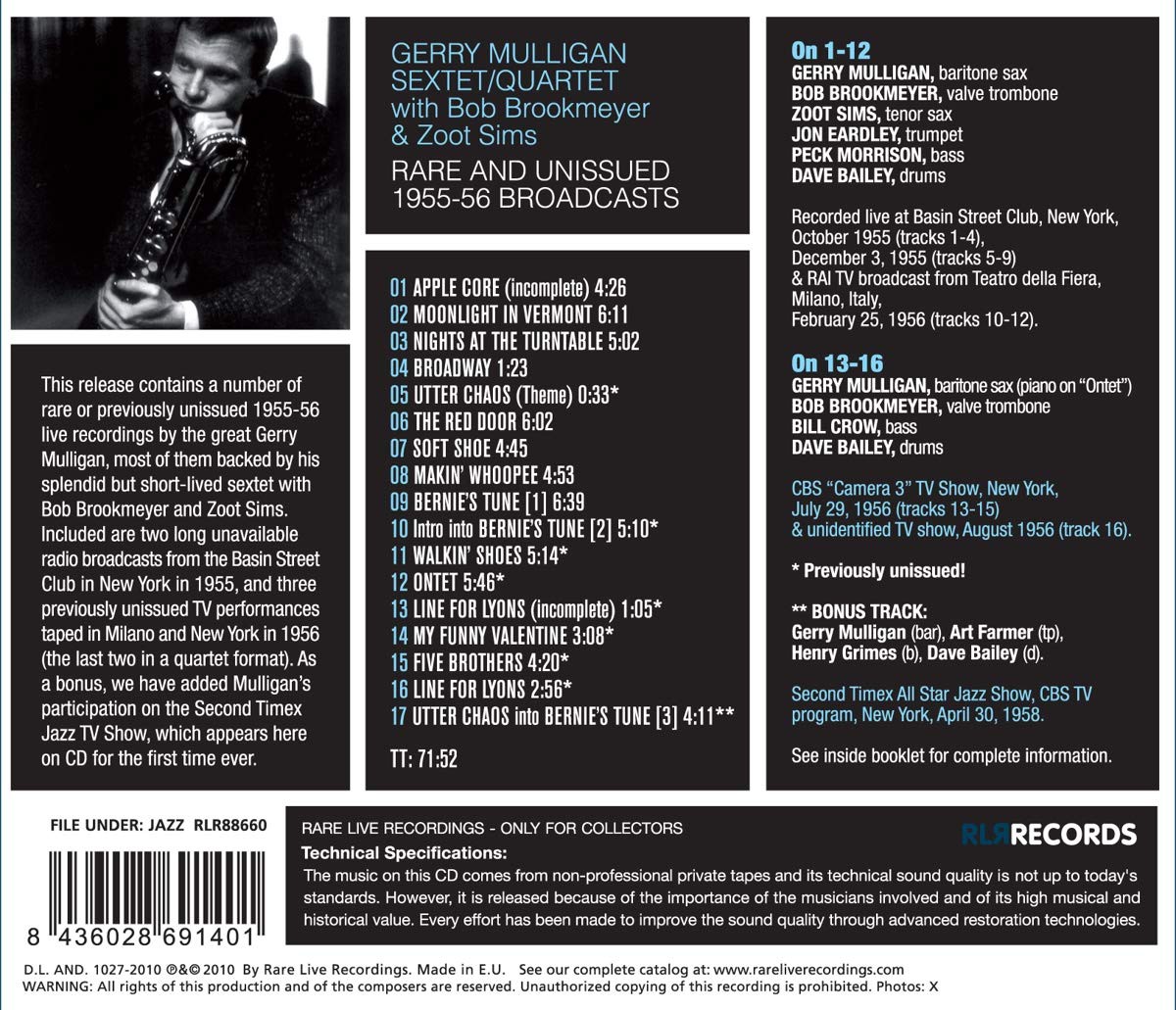 Gerry Mulligan: Rare And Unissued 1955 - 1956 Broadcasts - CD Foto