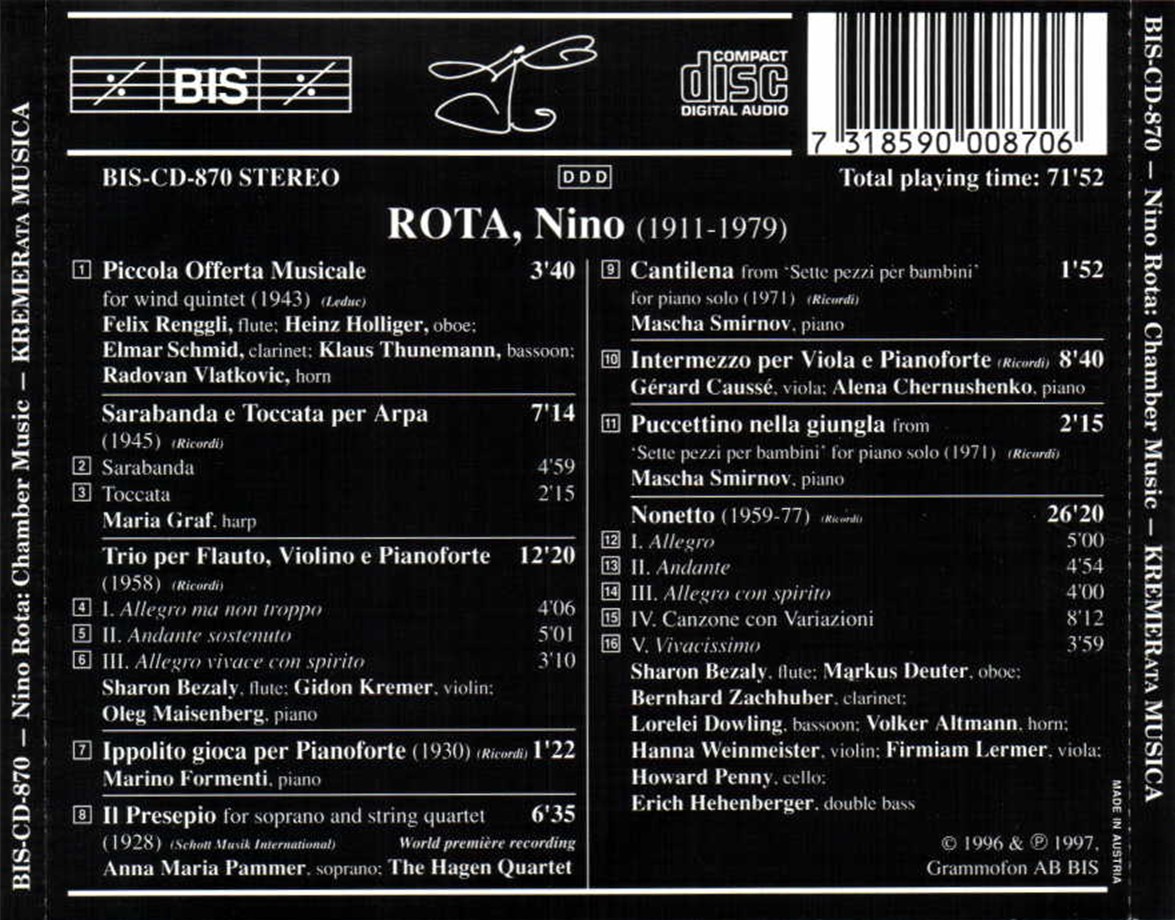 Gidon Kremer: Rota - Chamber Music - CD Foto