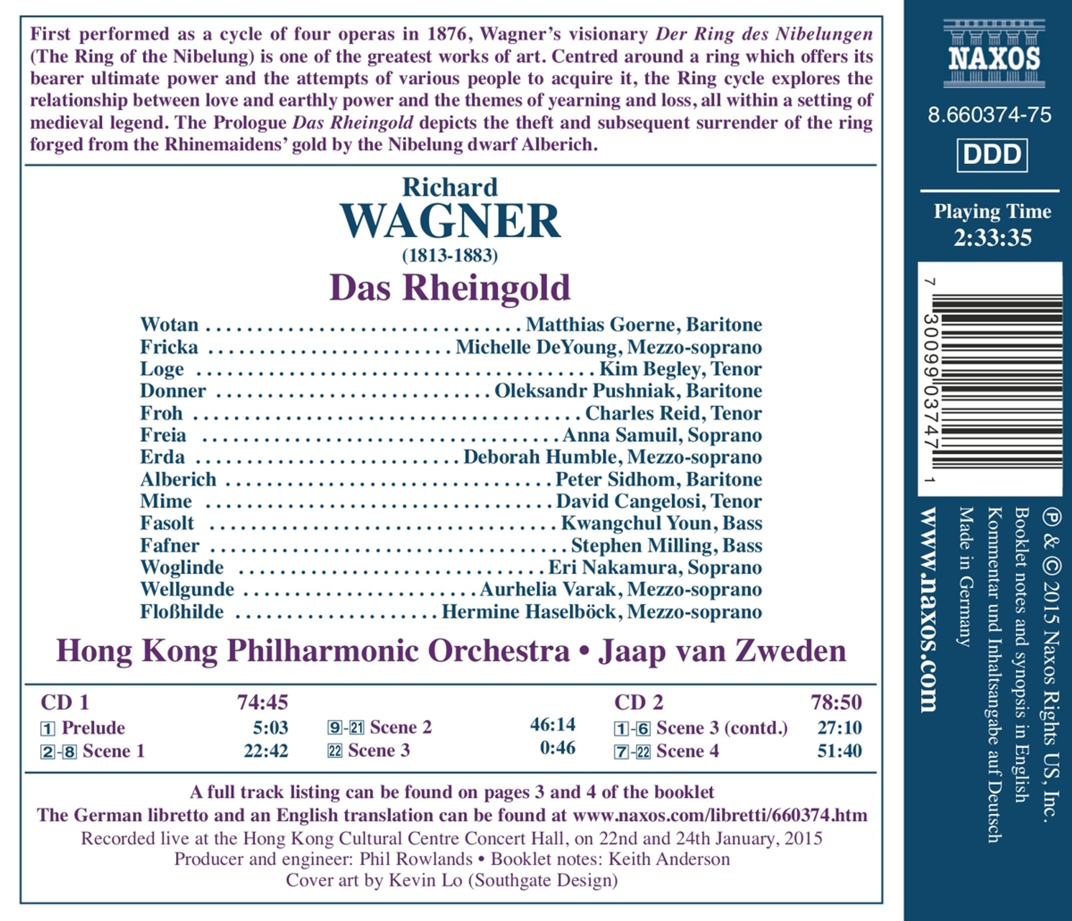 Hong Kong Philharmonic Orchestra, Jaap van Zweden, Matthias Goerne, Michelle DeYoung, Kim Begley: Wagner: Das Rheingold - CD Foto