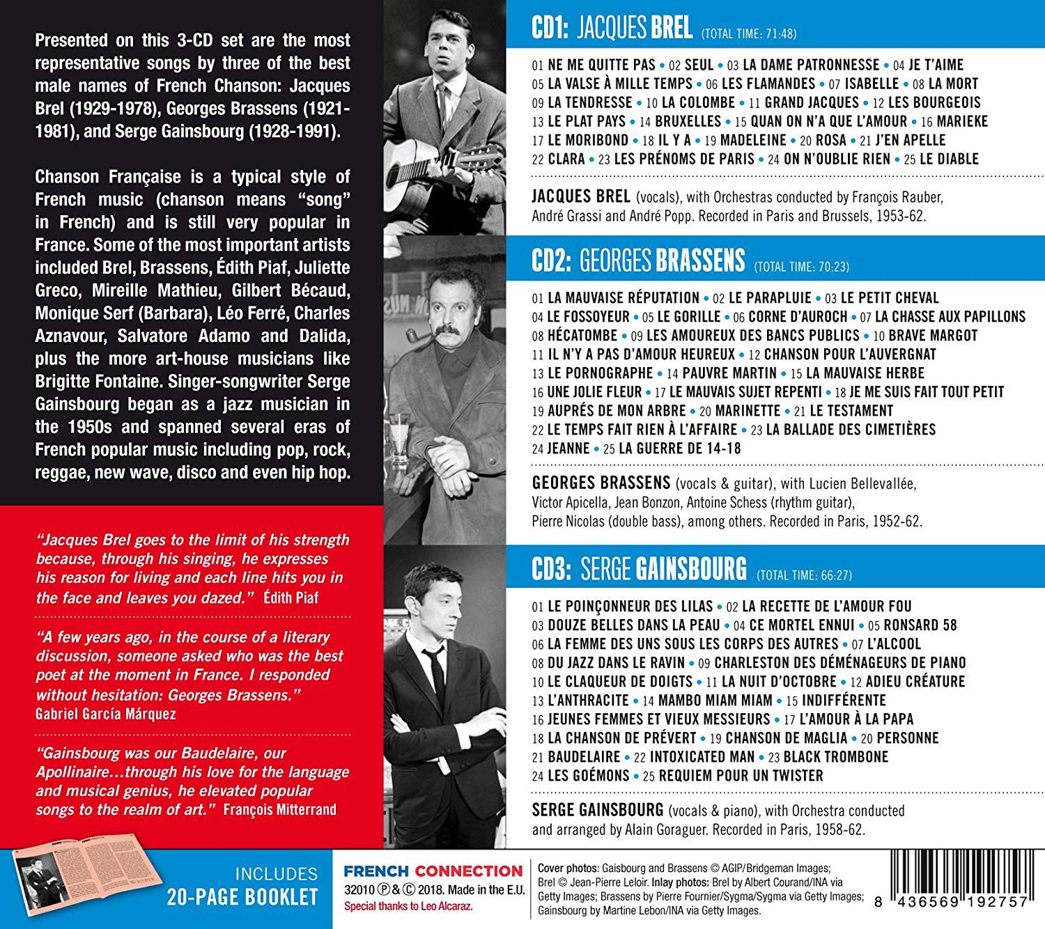 Jacques Brel, Georges Brassens, Serge Gainsbourg: French Connection (75 Tracks!!!) - CD Foto