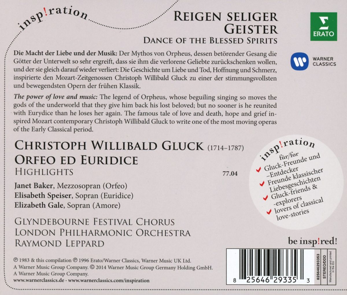 Janet Baker, Elisabeth Speiser, Elizabeth Gale, London Philharmonic Orchestra, Raymond Leppard: Gluck: Orpheus & Euridice (Highlights) - CD Foto