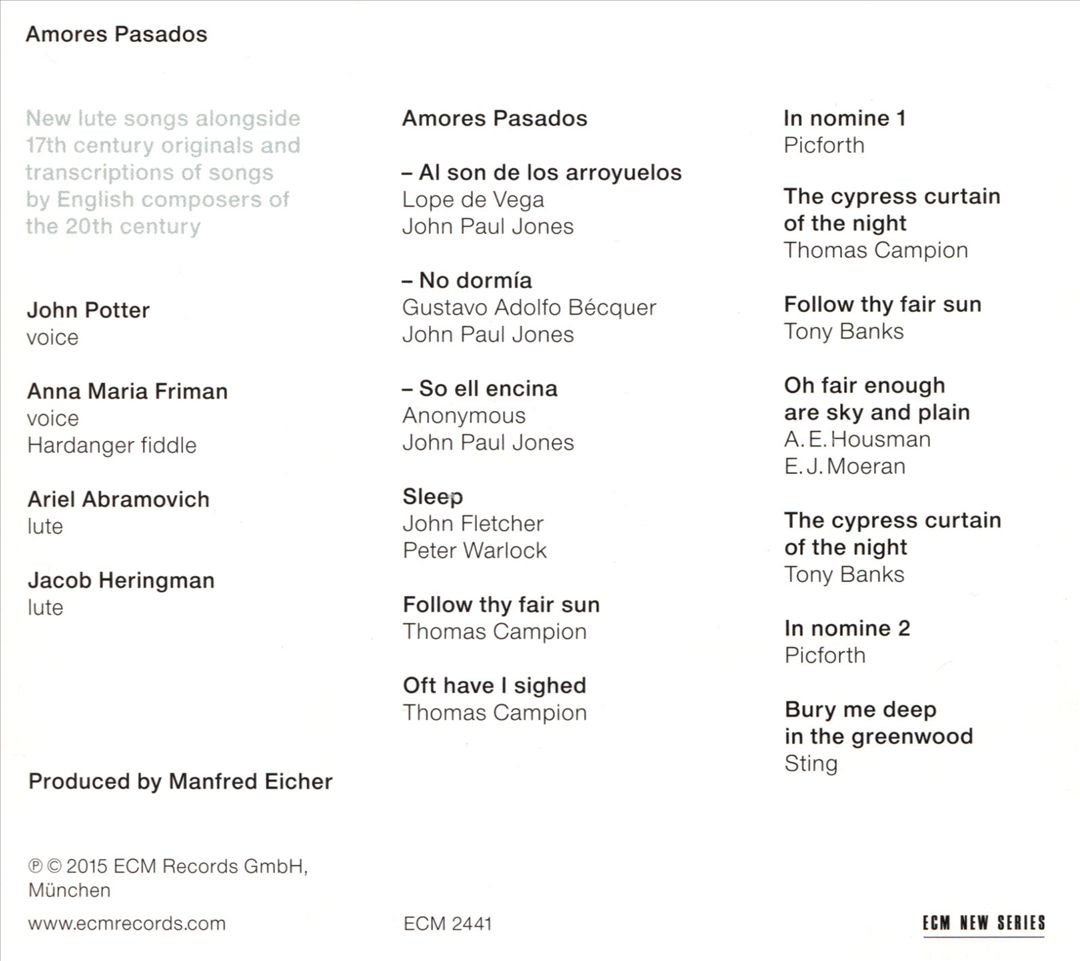 1998 yılına kadar The Hilliard Ensemble üyesi olan İngiliz tenor John Potter bundan sonra hayli etkileyici bir solo kariyere başladı. 1970'lerde başlayan kariyerine özellikle Hyperion ve ECM için yaptığı 100 kadar albüm sığdırdı. Potter erken dönem ve çağcıl müzik ve değişik vokal teknikleri konusunda bir uzman sayılır. Anna Maria Friman ise ECM kayıtlarından tanıdığımız Trio Mediaeval'dan tanıyoruz. Üç kadın sesinden oluşan topluluk ECM için altı albüm kaydetti ve hayli ilginç bir repertuvar seçkisi sundu.