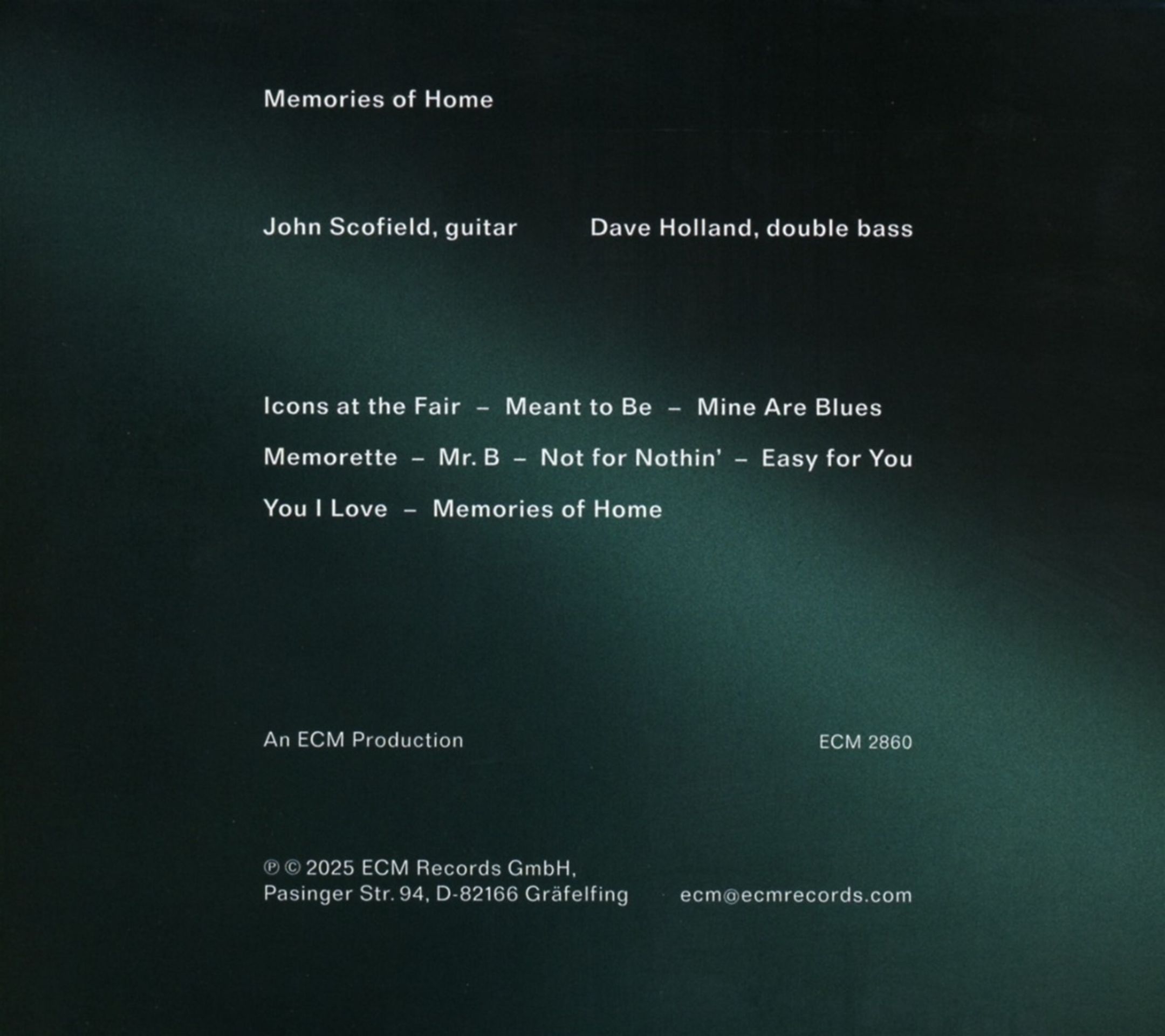 John Scofield, Dave Holland: Memories Of Home - CD Foto