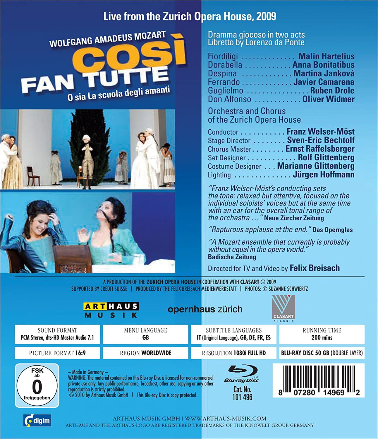 Malin Hartelius, Anna Bonitatibus, Martina Jankova, Javier Camarena, Ruben Drole, Oliver Widmer, Orchester der Oper Zürich, Franz Welser-Möst: Mozart: Cosi Fan Tutte - BluRay Foto