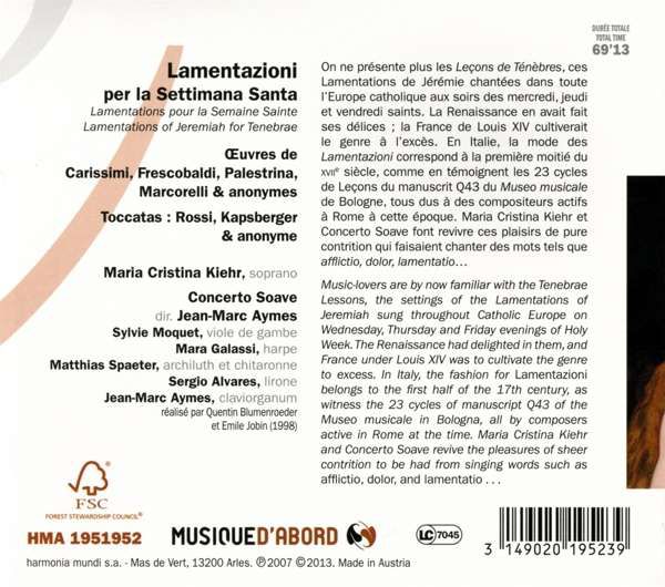 Maria Cristina Kiehr, Jean-Marc Aymes: Maria Cristina Kiehr - Lamentazioni per la Settimana Santa - CD Foto
