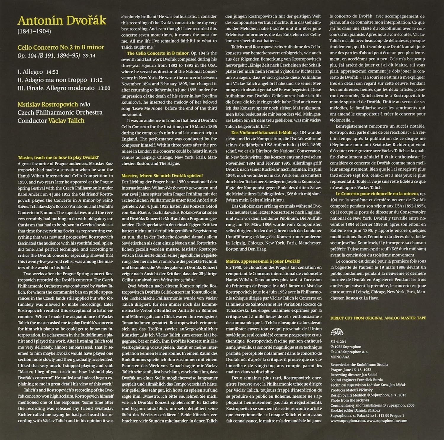 Mstislav Rostropovich, Czech Philharmonic Orchestra, Vaclav Talich: Antonín Dvorák: Cello Concerto in B Minor, Op. 104 - Plak Foto