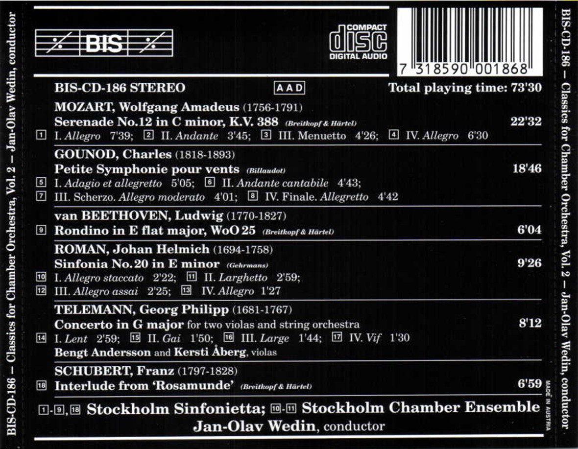 Barkod: 7318590001868 Firma: Bis Katalog No: BIS-186 Yayın Tarihi: Şubat 1995 Tür: Klasik Müzik Tür: Orkestra Müziği Tür: Barok Tür: Klasik Dönem Tür: Romantik Dönem Format: 1 CD